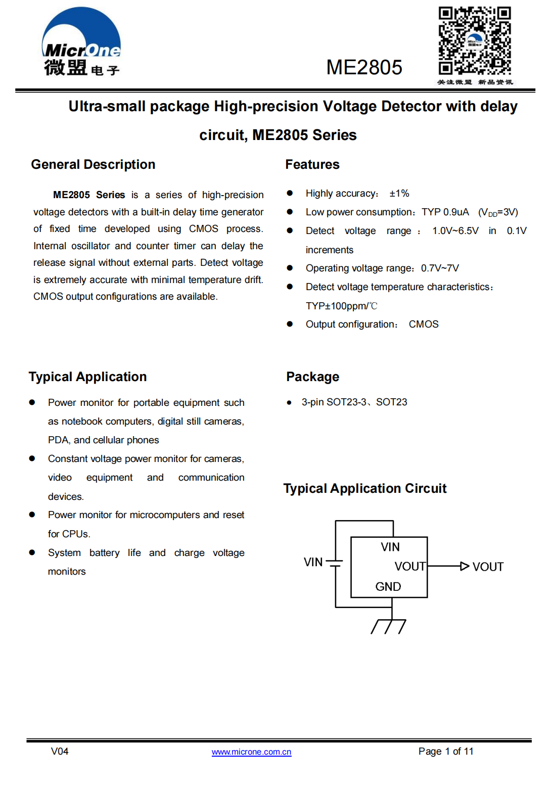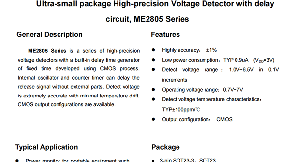 Ultra-small package High-precision Voltage Detector with delay circuit, ME2805 Series