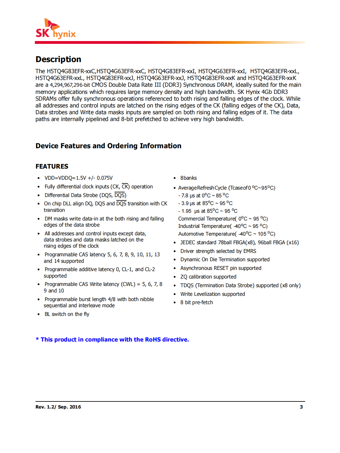 H5TQ4G63EFR_4Gb DDR3 SDRAM