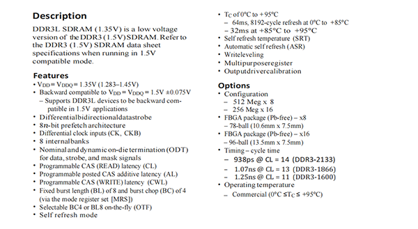 DDR3L SDRAM(1.35V)is a low voltage version of theDDR3(1.5V)SDRAM.Referto the DDR3(1.5V)SDRAM data sheet specifications when running in 1.5V compatible mode.