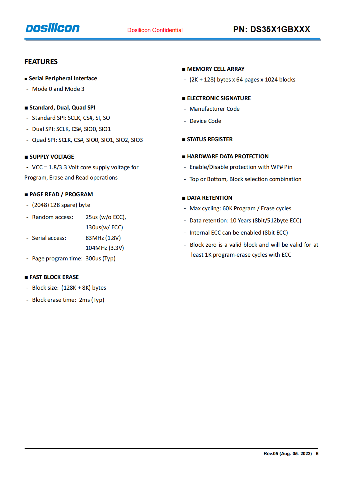 The device is offered in 3.3/1.8 Vcc Power Supply,and with SPI interface.The memory is divided into blocks that can be erased independently so it is possible to preserve valid data while old data is erased.
