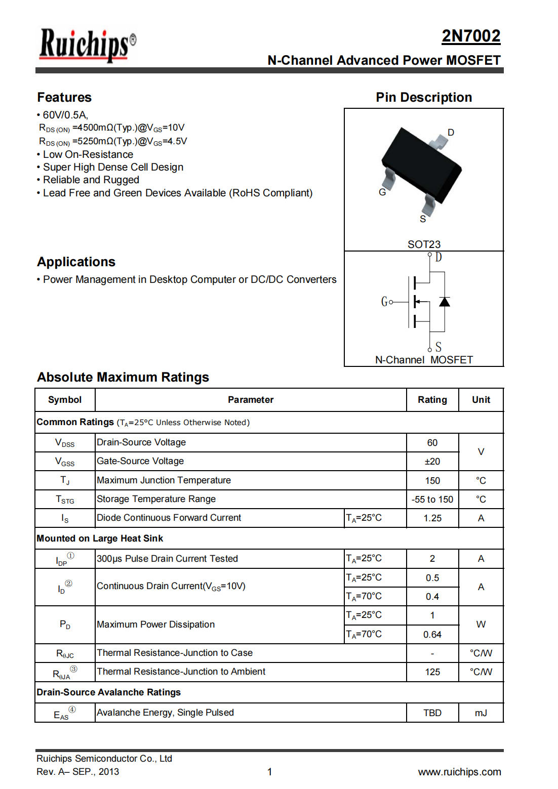 RDS (ON) =4500mΩ(Typ.)@VGS=10V