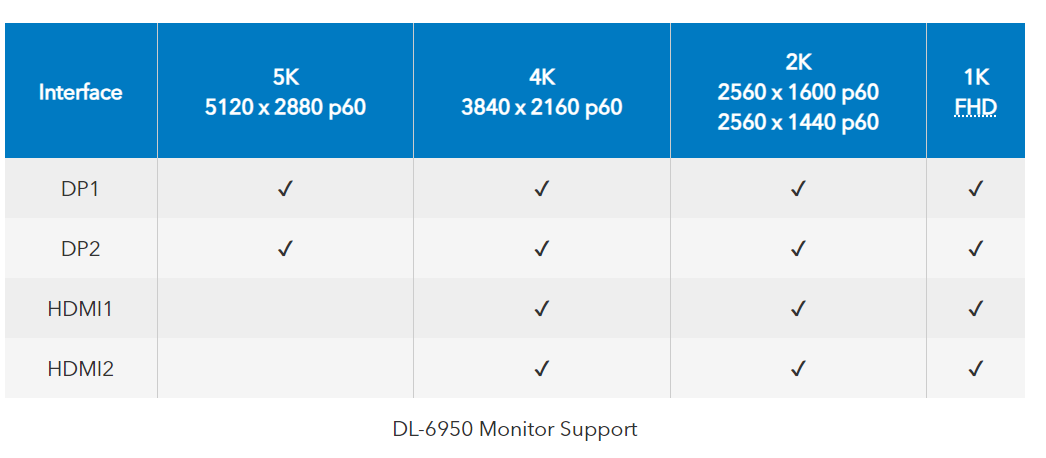 DL-6xxx具有兩個HDMI和DisplayPort PHY(HDP)接口,能夠輸出HDMI2.0或DisplayPort1.2a視頻信號。