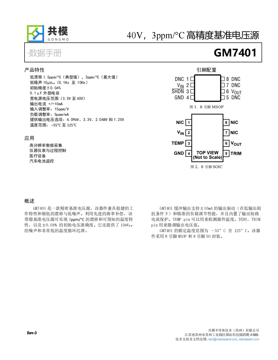 GM7401的額定溫度范圍為–55°C至125°C。該器件采用8引腳MSOP和8引腳SO封裝。