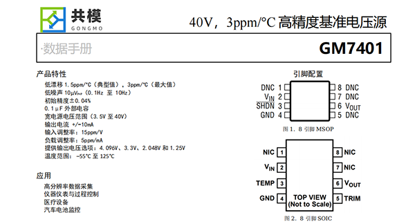 GM7401是一款精密基準電壓源,該器件兼具穩(wěn)健的工作特性和極低的漂移與低噪聲。利用先進的曲率補償,該帶隙基準電壓源可實現(xiàn)3ppm/°C的漂移和可預知的溫度特性,以及±0.04%的初始電壓準確度。它還提供了10μVP-P的噪聲和非常低的溫度循環(huán)遲滯。