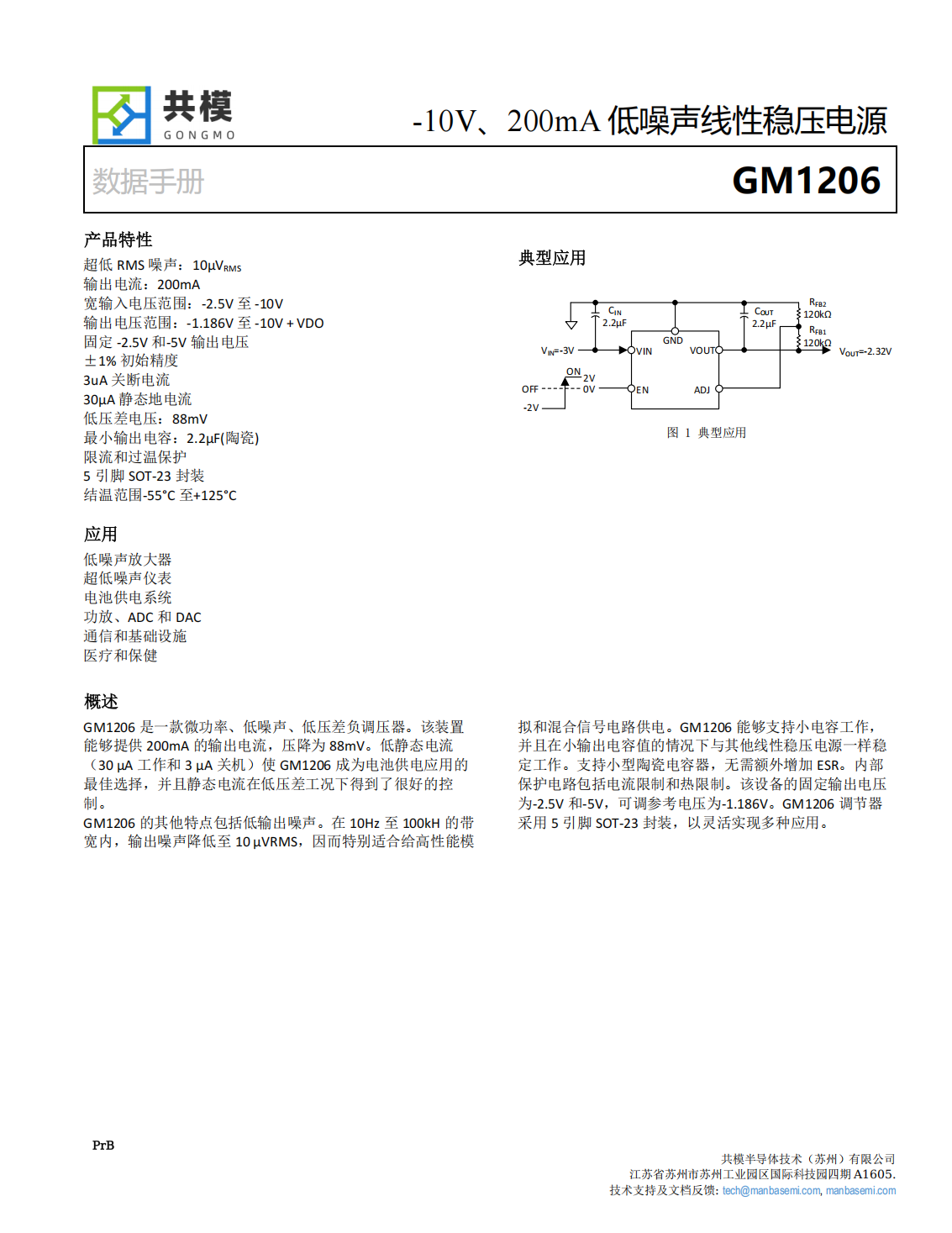 GM1206是一款微功率、低噪聲、低壓差負(fù)調(diào)壓器。該裝置能夠提供200mA的輸出電流,壓降為88mV。低靜態(tài)電流(30μA工作和3μA關(guān)機(jī))使GM1206成為電池供電應(yīng)用的最佳選擇,并且靜態(tài)電流在低壓差工況下得到了很好的控制。