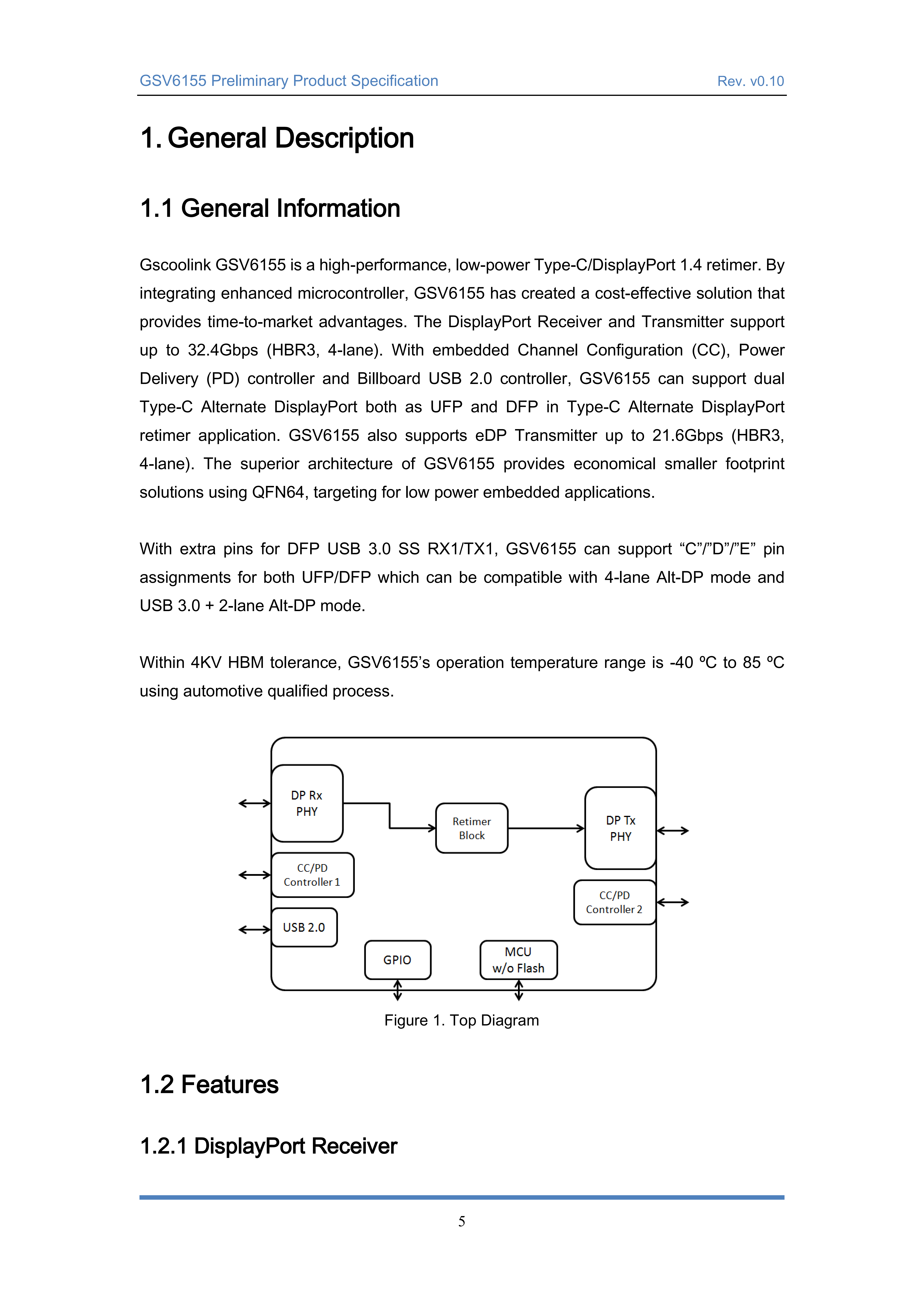 GSV6155內(nèi)置通道配置(CC)、電源傳輸(PD)控制器和Billboard USB 2.0控制器,可在Type-C備用DisplayPort重定時(shí)器應(yīng)用中支持雙Type-C備用DisplayPort,同時(shí)作為UFP和DFP。GSV6155還支持高達(dá)21.6Gbps(HBR3,4通道)的eDP發(fā)射器。GSV6155的卓越架構(gòu)提供了使用QFN64封裝的經(jīng)濟(jì)型小尺寸解決方案,適用于低功耗嵌入式應(yīng)用。